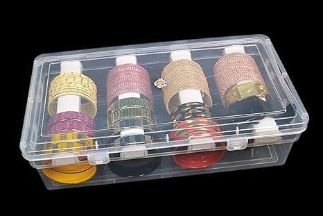 Keep your bangles organized and visible with this clear plastic bangle box. Featuring 4 compartments, it’s perfect for daily storage or travel.