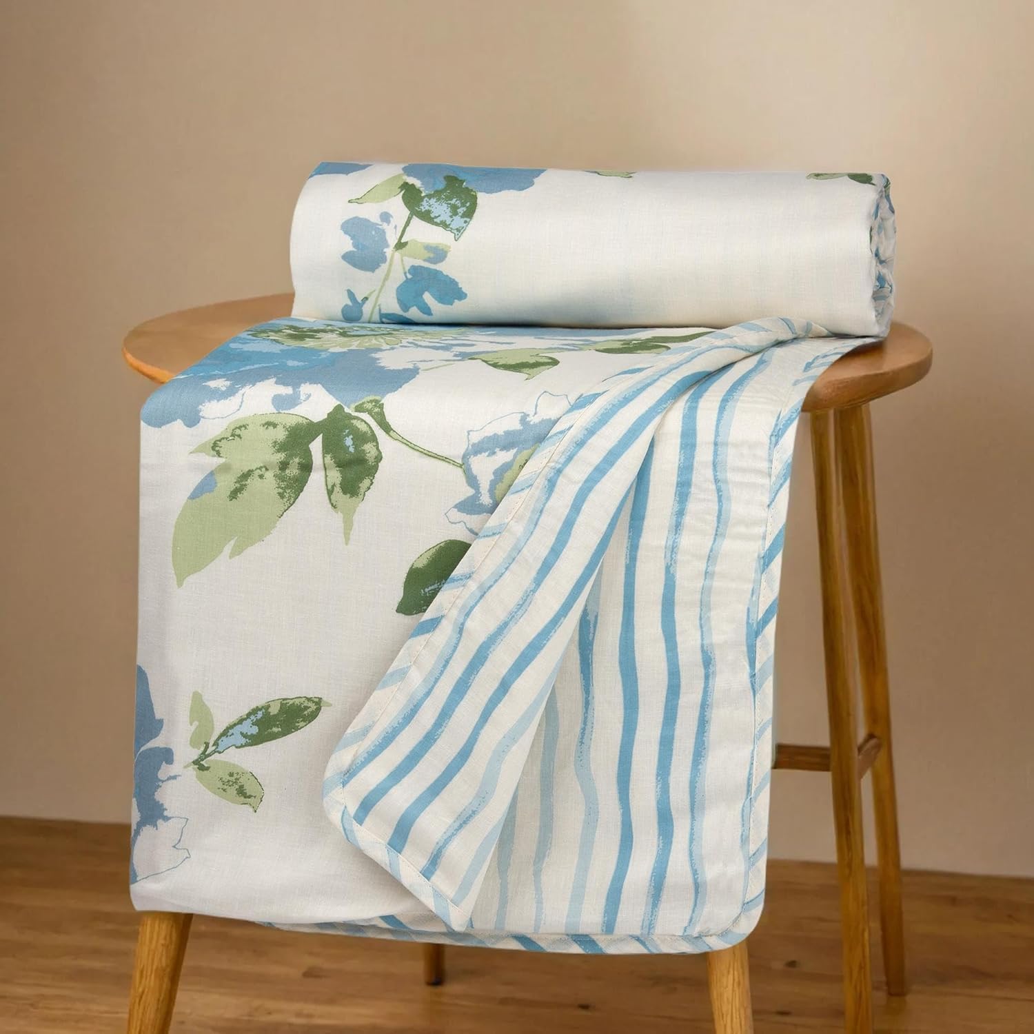 Enhance your bedroom with this floral fusion reversible dohars. Soft cotton material and perfect for all-season use in a single bed size.